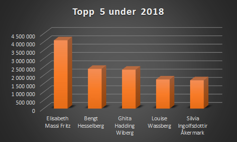 Tvåa på den sammanlagda listan kommer Silvia Åkermark Ingolfsdottir som fick knappt 3,5 miljoner under samma period.