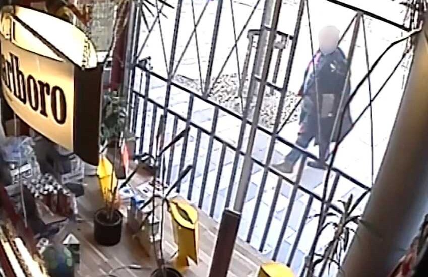 Medan de två männen rånar en butik i Eskilstuna tittar en man in genom fönstret, och blir vittne till rånet.