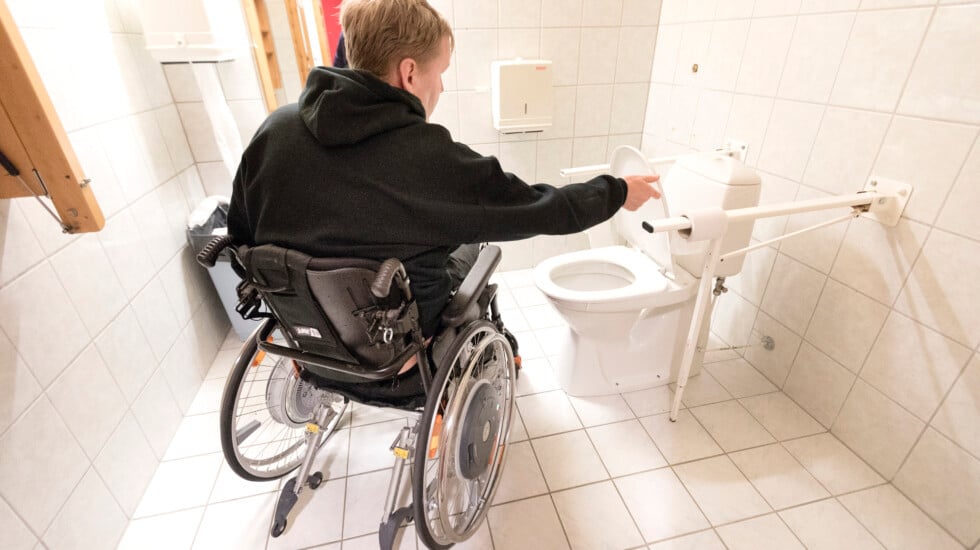 Mannen är rullstolsburen och förlamad från bröstet och ned. Han kan varken äta, dricka eller utföra sina behov själv och behöver ständig assistans.