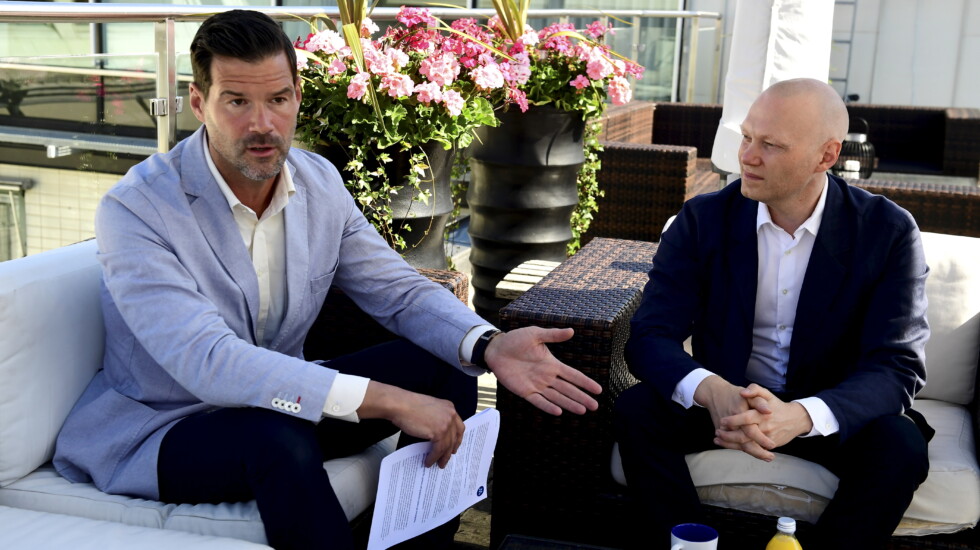 Moderaternas rättspolitiske talesperson Johan Forssell, och Moderaternas skattepolitiske talesperson Niklas Wykman har pressträff om förslag mot stöldligor. Foto: Chris Anderson / TT