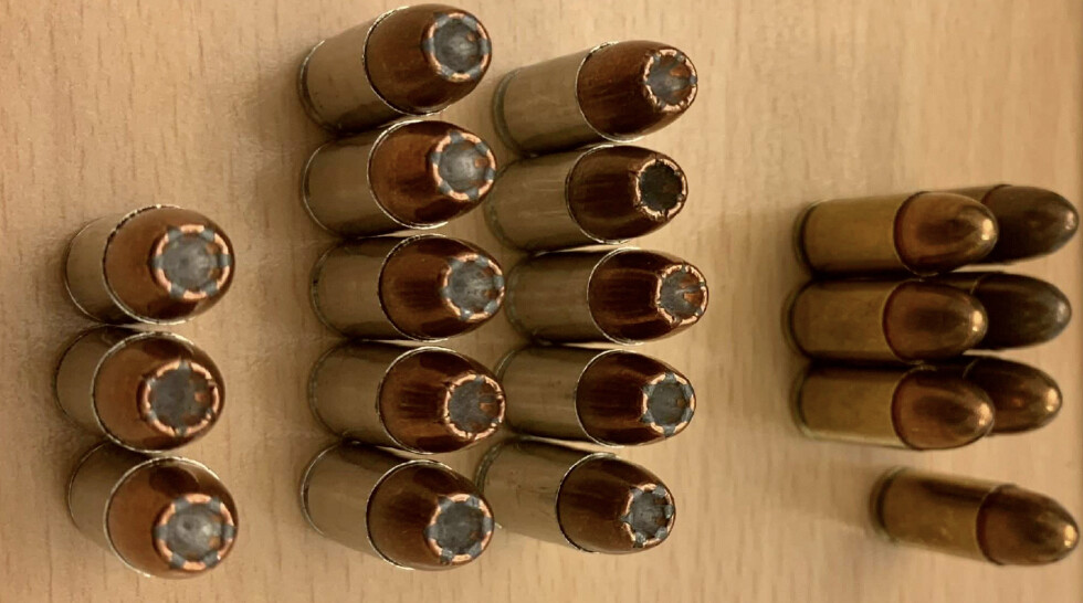 I polismannens handbagage hittades 20 patroner av myndighetens tjänste- och övningsammunition.